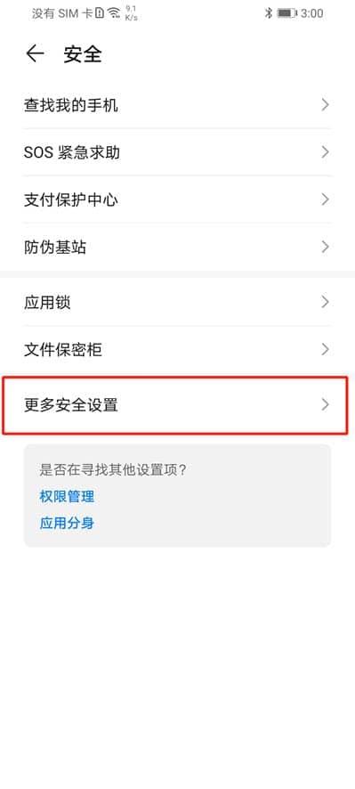 1.手机设置中点击[安全与隐私],选择[更多安全设置]